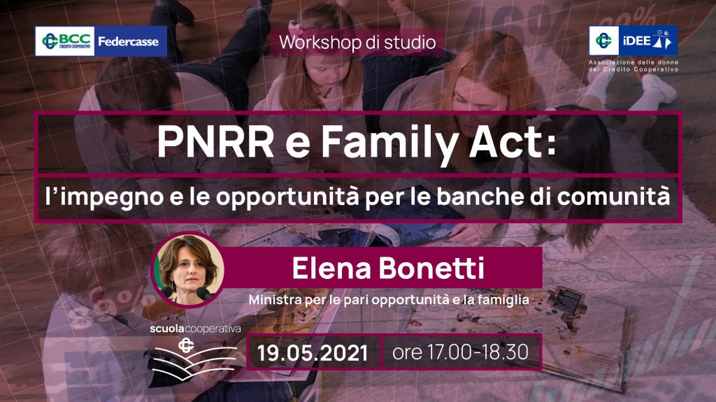 Banche PNRR e Family Act: l’impegno e le opportunità per le banche di comunità Principale relatrice dell’incontro la Ministra della Famiglia e delle Pari Opportunità, prof.ssa Elena Bonetti. 19 maggio 2021