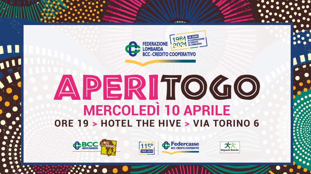 Mercoledì 10 aprile, alle ore 19 a Roma, presso l’Hotel The Hive (via Torino 6), si terrà l’aperitivo solidale "AperiTogo" organizzato da Federcasse e dalla Federazione Lombarda delle BCC.