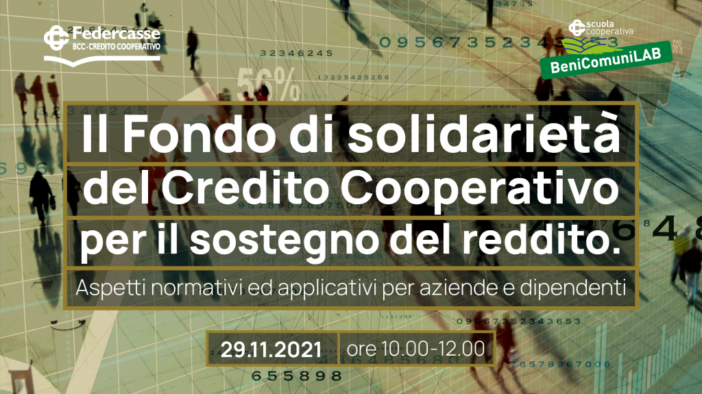 Secondo webinar del ciclo BeniComuniLab della ScuolaCooperativa di Federcasse: “Il Fondo di Solidarietà del Credito Cooperativo per il sostegno del reddito. Aspetti normativi ed applicativi per aziende e dipendenti”.