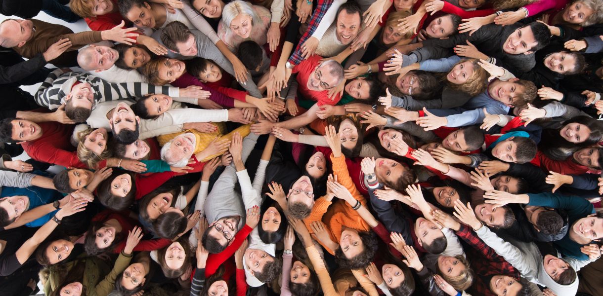 Terzo Settore Fondazione Tertio Millennio: pubblicato il “Bando 2026” del progetto “Laboratorio Italia” 24 marzo 2026 High angle view of large group of happy people joining hands in unity and looking at camera.